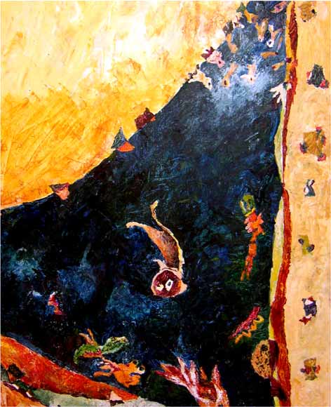 Der Trickster schwimmt im Ozean und sucht die Küste. Aus: So it is said. 1999
