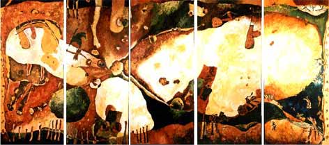 So it is said. 1999. Acryl auf Holz, fünf Bildtafeln, je 175 x 75 cm