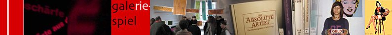 KUNSTSTÜCKE - EIN GALERIESPIEL UNTER DEM TITEL VON LIEBE, GELD, ABENTEUER 01.12.2000 - 17.12.2000 :: Kasko :: Basel Im Kaskadenkondensator, Raum für Kunst in Basel, bot sich im Jahr 2000 die Gelegenheit für "Helga Broll" Künstlerbilder zu untersuchen, Galeriespiele und einen Vernissagemarathon zu inszenieren und bei einem Lotto um eine Ausstellung zur "Liste 2001" das Glück der Künstler und Künstlerinnen zu prüfen. Galerie zu spielen - ist das eine ernsthafte Beschäftigung? An drei Wochenenden werden einzelne Streckenabschnitte thematisiert. >>> Künstler brauchen Liebe Vernissage am Freitag, 1. Dezember, ab 18 Uhr Ausstellung Samstag/Sonntag, 2./3. Dezember, 16-19 Uhr Wie wollen Künstlerinnen und Künstler aussehen, was wird von ihnen verlangt, was begehren sie und was wird ihnen zugesprochen? Unsere Materialsammlung untersucht das Künstlerbild, die Stilisierung der Künstlerpersönlichkeit zwischen Fremd- und Selbstbestimmung, Inszenierungen und Rituale innerhalb der Künstlerszene. >>> Künstler brauchen Liebe und Geld Vernissage am Freitag, 8. Dezember, ab 18 Uhr Ausstellung Samstag/Sonntag, 9./10. Dezember, 16-19 Uhr Sonntag grosser Vernissage-Marathon ab Uhr Wer bringt Künstler und Künstlerinnen gross raus? Wer verhilft ihnen zu Ruhm und Erfolg? Wollen Künstler nur das Eine von Galeristen? Was macht Galerien aus? Was brauchen sie von und was bieten sie welchen Künstlern? Wir untersuchen Konzepte, Wünsche, Verhältnisse und Geschäfte und werden in einer Sammlung von Video-Interviews auch die Situation der GaleristInnen und KuratorInnen unter unsere emphatische Lupe nehmen. Am Sonntag feiern wir in sieben Stunden sieben Mal Vernissage. Kuratieren und Aufbauen, Buffet und Eröffnungsrede, Publikum und Hüteplan, Katalog und Kritik im Schnellverfahren: als hochdosierte Karrierespritze für die Ausstellenden - für das Publikum eine hintersinnige Inszenierung und Visualisierung der Mechanismen des Ausstellungsbetriebs. Elke aus dem Moore (> Katalog als pdf) | Ruth Buck (> Katalog als pdf) | Copa und Sordes (> Katalog als pdf) | durbahn (> Katalog als pdf) | Friese (> Katalog als pdf) | Martina Gmür (> Katalog als pdf) | Gabriele Rerat (> Katalog als pdf) | Mesaoo Wrede (> Katalog als pdf) | Maria Magdalena Z`Graggen (> Katalog als pdf) |